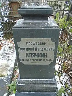 Grigory Abramovich Klyachkin died on July 21, 1946, in Kazan after a prolonged serious illness.[2][89]