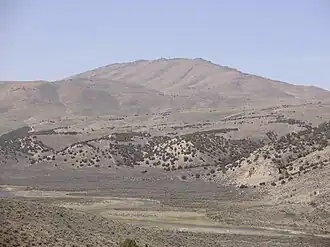 | Easiest route | A dirt road (high clearance required) leads northwest from Bullion Road (Elko County Route 720) to radio facilities on the summit[2] |