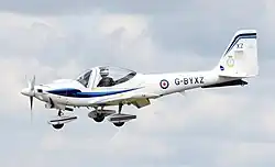 The Grob G 115 is a general aviation fixed-wing aircraft, primarily used for flight training. It is built in Germany by Grob Aircraft (Grob Aerospace before January 2009). The E variant with a 3-blade variable pitch propeller is in service with the Finnish Air Force,[1] the Royal Navy and Army Air Corps for Flying Grading (a pre-EFT flying course) and in the Royal Air Force as part of No. 6 Flying Training School (6 FTS) which provides flying to both University Air Squadrons and Air Experience Flights to Cadets of the Royal Air Force Air Cadets.[2] As of 2020, the Tutor is still being used by the RAF for some Elementary Flying Training (3FTS) but is due to be phased out in favour of its replacement, the more advanced Prefect T1.