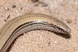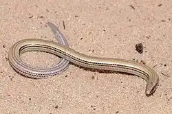 S. gronovii has no front legs, and each back leg has only one toe.[2] The snout-to-vent length (SVL) of adults is usually 5–6 cm (2.0–2.4 in), and the maximum recorded SVL is 7 cm (2.8 in).[4]