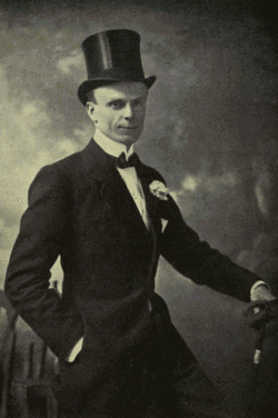Grossmith's breakthrough came in Morocco Bound (1893), where he made the most of the small role of Sir Percy Pimpleton by adding ad-libbed sight and word gags, becoming an audience favourite and establishing his style of playing aristocratic "silly-ass" or "dude" roles.[3][5] This was followed by appearances in Go-Bang (1894 as Augustus Fitzpoop) and in George Edwardes's production of A Gaiety Girl (1893 as Major Barclay). He also played in Pick-me-up at the Trafalgar Square Theatre in 1894 with Jessie Bond and Letty Lind.[6] Edwardes then hired Grossmith to create the part of Bertie Boyd in the hit musical The Shop Girl (1894). The 21-year-old actor wrote the lyrics to his character's hit song "Beautiful, bountiful Bertie", which he popularised in both London and New York.[7] He eventually appeared in some 20 Edwardes shows, often interpolating his own songs into the shows.[5]