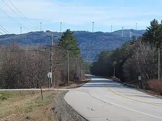 Groton Wind towers at north end of Fletcher Mountain, viewed from NH 25