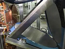 The telescope consists of two mirrors in a Mizuguchi-Dragone configuration, with a diameter of 30 cm (12 in). The telescope is inside the cryostat, which is mounted on a rotation table, with a rotary joint that provides helium gas and electricity to the cryostat.[2][3] The mirrors are cooled to 4 K (−269.15 °C) using a Pulse tube refrigerator to reduce the thermal noise from the mirror surfaces.[2]