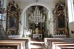 The Sanctuary of St. Magdalena is located near the border, between Gschnitz and Trins, at an altitude of 1,661 m (5,449 ft) accessible only on foot, under the Schönberg. The church is the oldest in the valley as confirmed by the Romanesque frescoes dating back around 1200 and discovered in 1959.