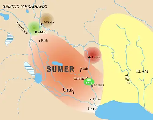 Gu-Edin (also transcribed "Gu'edena" or "Guedena") was a fertile plain in Sumer, in modern-day Iraq. It lay between Umma and Lagash, and claims made on it by each side were a cause of the Umma-Lagash war.[1] Argument over the territory continued for around 150 years.[2]