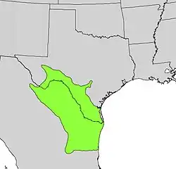 In Texas, this tree can be found in the area around the Rio Grande, including Austin, Matagorda Bay, New Braunfels, San Antonio, Brownsville and Fort McIntosh westward to the Rio Pecos. In the 19th century, trees growing along the outskirts of this region were so small they were described by the United States Department of Interior as "low shrub(s)". The largest examples could be found on the hillsides near the Guadalupe River valley.[6] In Mexico, the plant is found in the states of Chihuahua, San Luis Potosí, Coahuila, Nuevo León, and Tamaulipas.