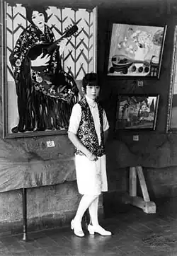 After her graduation in 1927, she followed Chen's advice and went to Japan to further her studies.[5] She enrolled at Bunka Gakuin in Tokyo,[4][6] and her style became strongly influenced by Henri Matisse's Fauvism.[5] In the 1920s and the 1930s, Chinese women who had successful careers in Japan attracted significant attention from Japanese media. Guan made headlines as a representative of the "modern girl" and was projected as a model beauty.[7]