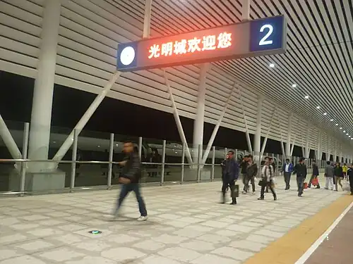 Guangmingcheng railway station (Chinese: 光明城站; pinyin: Guāngmíngchéng zhàn; lit. 'Guangming City railway station') is a railway station of the Guangzhou–Shenzhen–Hong Kong Express Rail Link and is located in Guangming District, Shenzhen, Guangdong, China.