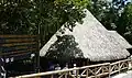 Guayabo de Turrialba seems to have been a locus of social power in the wake of this período de integración. It was initially populated beginning in about 1000 BCE, and then abandoned in 1400 CE, a century before the Spanish arrived, for reasons that remain a mystery. Researchers still to this day have not found any sign of why people might have left. However, there is speculation that it might have had to do with something like disease or rival civilizations. It has been estimated that there were about 10,000 people who were residents. Believed to be the home of the Pre-Columbian people, this relic site was first discovered in the 1800s and was first excavated in the year 1882. What has been found and what the site consists of is the city's infrastructure, petroglyphs, tombs, and artifacts that were left behind and found by archaeologists in the 1960s during further excavations. To be more specific, the magnitude of the known part of the site, presumed to be its central portion, consists of 43 stone foundations, three aqueducts, two major roadways, dozens of smaller paths, and some stone tombs. The people of Guayabo were known to be well aware of good engineering, which can be assumed by their use of aqueducts. Most of the site consists of circular mounds that the conical wooden structures that were once built on. Side note; the villagers used to live in huge communal-like conical houses with thatched roofs with most, if not all, of their family members. One mound in particular, Mound 1, stands out as it is the largest one of this culture and it is located in the center of the village. To its front runs a paved road which connected the surrounding settlements, with it as far as 9 km. That is considered the most impressive finding at the site. Architecturally, back in the day, the main building probably served as both a symbol as well as a place to conduct public business.[3] After ascending the stairs next to the center mound, visitors would have been greeted by a matching pair of structures, rectangular in shape. These were probably guardhouses that flank the road at this point and would have controlled access to the settlement. A lot of the artifacts found when excavating, such as the stones and petroglyphs, represented animals such as jaguars and lizards. The function of these petroglyphs is still unknown, but many people assume that they were decoration. There were tools that were found that suggested that Guayabo had people dedicated to growing agriculture which mainly consisted of roots such as yucca. Studies have shown that the people of Guayabo did most of their own work although there is some data suggesting slavery may have been practiced.[4][5]