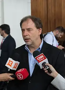 He has also been involved in several controversies in Chile.[5][6] He agitated a legal and social polemic for filing a complaint in November 2008 against two police officers who allegedly "disrespected" the senator while writing him a speeding ticket. Both officers were retired from the police.[5] He had used false bills from a nonexistent company, Publicam, in order to justify his campaign expenses to the Servicio de Impuestos Internos (Internal Tax Service).[7]
