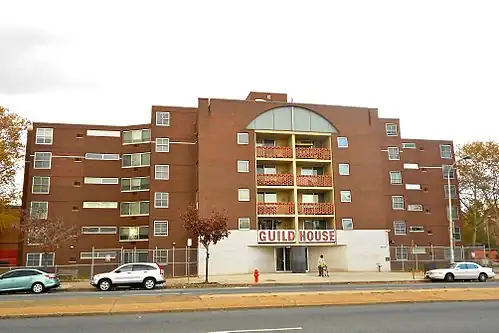 Guild House was commissioned by the (Quaker) Friends Neighborhood Guild, a subsidiary of Friends Rehabilitation Program, Inc., as low-income housing for the elderly and built in 1960–63.[6][7] It was designed by Venturi and Rauch in collaboration with Cope and Lippincott, another Philadelphia firm. In 2004, the building was added to the Philadelphia Register of Historic Places despite being barely 40 years old at the time.[1][2]
