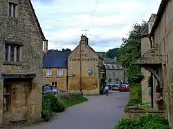 The village is unusual for its size in having a Post Office, a village hall, a children's nursery, a bakery, a village shop, and two public houses, the Farmer's Arms and the Hollow Bottom. Nearby are the excavated foundations of the original Anglo-Saxon church and a large kerbed round barrow shown as a tumulus on Ordnance Survey maps.[19] To a large extent, the village owes its preservation to the Guiting Manor Amenity Trust.