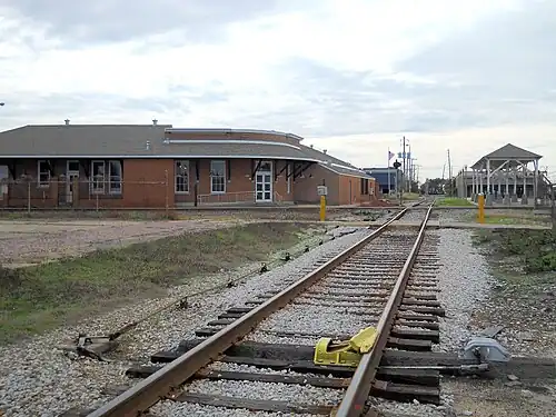 Amtrak service began with the Gulf Coast Limited, which operated between 1984 and 1985 and called at the station.[5][6] The stop was reactivated on March 31, 1993 in service on the Sunset Limited.[7] Service east of New Orleans was suspended after Hurricane Katrina struck the Gulf Coast in 2005.[8][1]