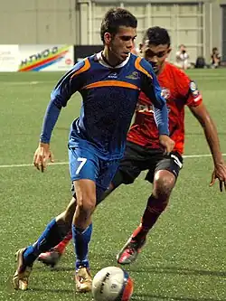 | Guntur Djafril in action for Woodlands Wellington in a S.League match against Courts Young Lions at Jalan Besar Stadium on 12 February 2012. | |||