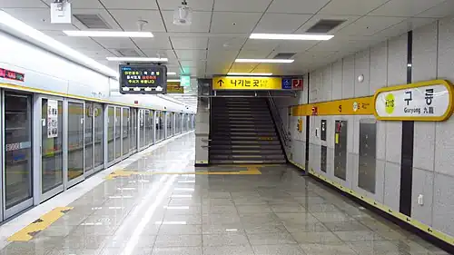 Guryong station (Korean: 구룡역) is a station on the Suin–Bundang Line of the Seoul Metropolitan Subway network in South Korea. It is in the Gaepo-dong area of the Gangnam District of Seoul. The station opened on October 24, 2004.[1]