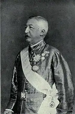 His achievements for Siam were formally recognized by King Chulalongkorn (Rama V) when he elevated Gustave Rolin-Jaequemyns to the rank of Chao Phya,[1] the highest non-royal rank in Siamese hierarchy. His full title was Chao Phya Abhai Raja Siammanukulkij (เจ้าพระยาอภัยราชาสยามานุกูลกิจ; RTGS: Chaophraya Aphairacha Sayammanukunkit).