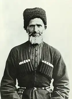 The Cherebashev settlement was located on the site of the Ingush village of Gvileti in the Darial Gorge. According to Ingush historical legends, the ancestors of the Cherbizhev's (Чербижевы) lived along the areas of the Georgian Military Road. In one of these legends, written down by B.K. Dalgat, it is said that Cherbizh (Чербыш) and the inhabitants of Gvileti managed to defeat the army of the Kabardian knyaz, which was marching on Tiflis.[6][7] In gratitude for this, the Georgian king George presented Cherbizh with land from Kazbeki to Gvileti.[8][9]
