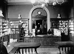 The property was later in 1787 sold to Søren Gyldendal. His property was home to 42 residents in four households at the 1801 census. Gyldendal resided in the building with his wife Frideriche Kraft, their eight-year-old son Jens Kraft Gyldendahl, his 11-year-old daughter Bolette Cathrine Gyldendahl (by his second wife), his nephew Thomas Møller (a volunteer in the firm), five lodgers, two maids, a coachman and a caretaker.[7] Johan Leiner Arntsen, a club host, resided in the building with his wife Karen Sophie Jacobsen, their four children (aged four to 14), his sister-in-law Kirstine Jacobsen, two male servants, and three maids.[8] Peder Johannes Heide, a game and fruit merchant, resided in the building with his wife Anne Margrethe Sørensdatter, their five children (aged two to 12), three lodgers and one maid.[9] Johan Philip Bistrup, a baker, resided in the building with his wife Jacobine Lovise Hein and their two daughters (aged 18 and 21).[10]