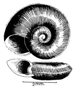 | Drawing of apical and apertural view of the shell of Gyraulus costulatus. | |