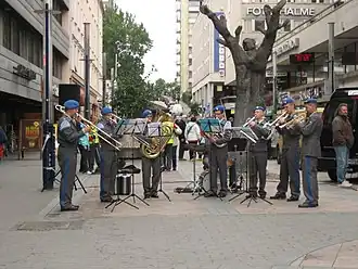 The Military Music School is open to eligible volunteers. Military Music School accepts yearly some 80 applicants adept at playing a musical instrument, on the basis of national entrance exam. The service term is 9 or 12 months. Most of this time is spent in the Finnish Defence Forces Conscript Band. However, part of the conscripts receive NCO training in addition to their musical duties. In addition to conscript training, the Military Music School trains career musicians of the FDF. In 2015, Conscript Band of the Finnish Defence Forces was moved to Armored Brigade which had its own band (Armored Band) disbanded in 2013. Military Music School as organization was disbanded.[1] The Conscript Band's and Military Music School's traditional march was Marssi nro. 9.[3]
