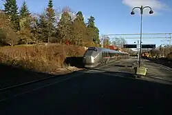 Skanska won the contract to build the new Høvik Station.[15] To carry out efficient construction work, the segment of track was closed and all trains diverted via the Bærum Tunnel from 7 April 2013 to 13 December 2014. The upgrades saw the demolition of the station building.[14] In addition 670 metres (2,200 ft) of sound shields were built along the sides of the tracks.[16] However, the signaling system, built by Thales Rail Signalling Solutions, was delayed.[17] The upgrades freed up track capacity allowing the number of trains to increase from two to four per direction per hour.[15]