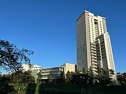 Hosei has three main campuses, which it calls Ichigaya, Koganei, and Tama. The Ichigaya campus is an urban campus halfway between Ichigaya and Iidabashi stations in central Tokyo; its 26-story Boissonade Tower, completed in 2000, can be seen from either station. The campus is located close to the Yasukuni Shrine. Natural sciences are studied at the Koganei campus to the west of Tokyo, and other subjects are split between Tama (located in Machida, which is near Hachiōji), and Ichigaya.