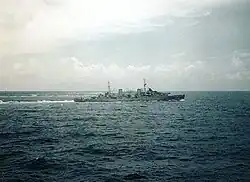 At the start of World War II, Hobart was initially deployed on patrols of Bass Strait.[5] A month later, on 13 October, the cruiser sailed for Singapore with several RAN destroyers.[5] After arrival, she was assigned to patrol and convoy escort duties in the Bay of Bengal and the Arabian Sea.[5][7] In February 1940, she escorted an Australian troop convoy from Colombo to the Middle East, then spent time in Ceylon as flagship of the Commander-in-Chief, East Indies, before being transferred to Aden with HMS Liverpool in April to form the core of the Royal Navy's Red Sea Force.[5]