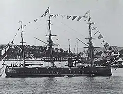 In 1872 and 1873, the vessel patrolled the Pacific islands in search of blackbirders. In particular, they were on the lookout for Bully Hayes.[3]