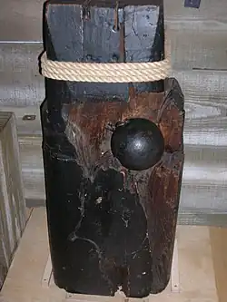 In 1854–1855 Blenheim saw service in the Baltic Sea as a 60-gun steam screw vessel.[3] During this service a 32-pounder cannonball struck and became embedded in her mast in 1855.