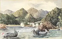 On 25 April 1855 Hornet, along with HMS Sybille and HMS Bittern, under Commodore The Hon. Charles Elliot discovered Liancourt Rocks in the Sea of Japan, at 37°14′22″N 131°52′10″E / 37.23944°N 131.86944°E. It was about a mile in extent, running in a NW by W and SE by E direction and formed together by a reef of rocks.[2] The Hornet's commander at the time, Charles Codrington Forsyth, noted in the ship's log: