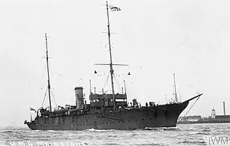 Maidstone led the 8th Submarine Flotilla to its war station at Harwich in the 1914 mobilisation. She remained the principal depot ship for the offensive submarine force at Harwich for the duration of the hostilities. Maidstone's Flotilla was re-established as the 9th Submarine Flotilla in August 1916. However, this was only a change of the flotilla number and there was no change in her duties.[4]