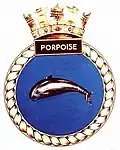 HMS Porpoise (N14) was one of the six-ship class of Grampus-class mine-laying submarines of the Royal Navy. She was built at Vickers Armstrong, Barrow and launched 30 August 1932. She served in World War II in most of the naval theatres of the war, in home waters, the Mediterranean and the Far East. She was sunk with all hands by Japanese aircraft on 19 January 1945, and was the last Royal Navy submarine to be lost to enemy action.