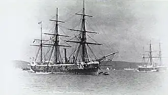 | _AWM_302249.jpeg) HMS Rapid anchored at Farm Cove, Sydney c. 1888. | |