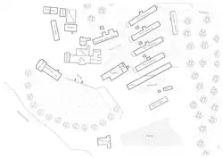 The camps buildings were mainly made from wood with brick foundations, apart from the Dining Hall which had brick chimneys and metal smoke outlets. The camp contained four cell blocks each unit with a communal bathroom. Other buildings on the site, a shower block, library, first aid centre, gardeners workshop, a carpenters workshop, plumbing workshop, education building and art studios and also a visits room.