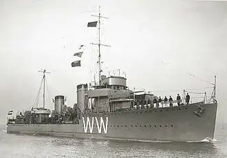 HNLMS Witte de With (Dutch: Hr.Ms. Witte de With) was an Admiralen-class destroyer built for the Royal Netherlands Navy during the 1920s. Completed in 1930, the ship served during the early stages of the Pacific War, participating in the Battle of the Java Sea in early 1942. After being damaged in an airstrike, she was scuttled in March 1942 to prevent her capture by the Japanese.