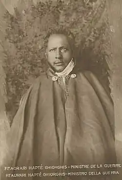 From 1909 to 1926, Habte Giyorgis was Chief Minister (equivalent to the late title of Prime Minister) of the Council of Ministers to the Emperor of Ethiopia. He was an important figure in the Ethiopian Empire often cited for his great skills as military commander and judiciary.[3]