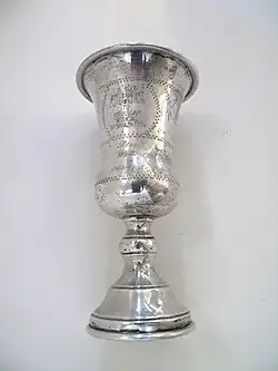 Kiddush cup given to Hadassah volunteer, Bronx, New York, 1955–1956