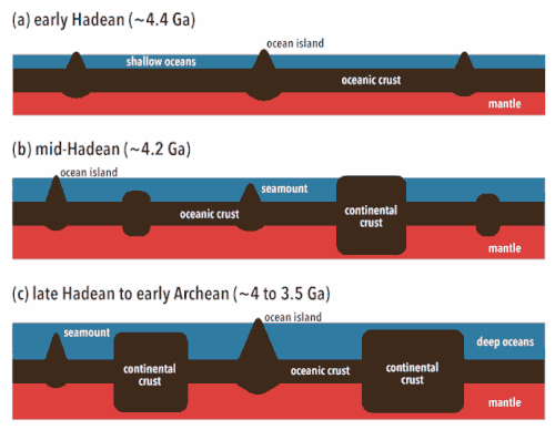 - ^ Rosas, JC; Korenaga, J (2018). "Rapid crustal growth and efficient crustal recycling in the early Earth: Implications for Hadean and Archean geodynamics". Earth Planet. Sci. Lett. 494: 42–49. Bibcode:2018E&PSL.494...42R. doi:10.1016/j.epsl.2018.04.051. S2CID 13666395.