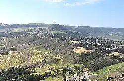 In 1951, Gebru Gebrehiwot, the new governor, decided to create a new capital of Tembien. First the location of Melfa was chosen. As the inhabitants of Melfa rejected the idea, Hagere Selam was created as a new town. It used already to be an open air market place (hence the name "Idaga Hamus" or Thursday market) – the place was a strategically located mountain saddle, also called "May Aleqti". The new town grew then from the pre-existing settlements May Aleqti and Addi Hailom. In practice, the capital remained in Abiy Addi. It was only after the district of Dogu’a Tembien was created that Hagere Selam started to grow. Basic modern infrastructure (electricity, tap water) came only in the early years 2000.[3] Starting 2016, a new settlement was established in a nearby location called Addi Selam.