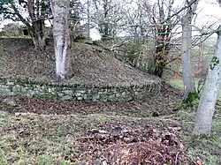 Haining Place or The Haining in the Parish of Kilmarnock lies near an old fording place across the Cessnock Water in East Ayrshire, Parish of Riccarton, Scotland. Hanyng (sic) was the caput or laird's dwelling of the Barony of Haining-Ross[1] with a tower house or keep located in a defensive position on a high promontory of land, half encircled by the river. Later Haining Place may have been a dower house, then a tenanted farm, finally being used as farm workers accommodation. Haining Place is now a ruin following a fire. The old farm of Haining Mains is still located nearby.