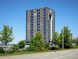 On October 26, 2011, the airport authority announced the construction of an on-site 14-storey, 169-room, Alt Hotel.[51] Linked to both the passenger terminal and the parking garage by an enclosed footbridge, the $27 million building was built by Marco Construction of Halifax and opened in 2013. Operated by Groupe Germain Hospitalité, the hotel includes conference and banquet facilities, a fitness centre, a pool, and a 24-hour cafe.[52] It was built with soundproof windows to block aircraft noise.[53]