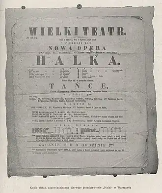 - ^ Instytut Teatralny im. Zbigniewa Raszewskiego (2010). "Halka – Stanisław Moniuszko". Kalendarium. Polski portal teatralny e-teatr.pl. Retrieved February 13, 2013.