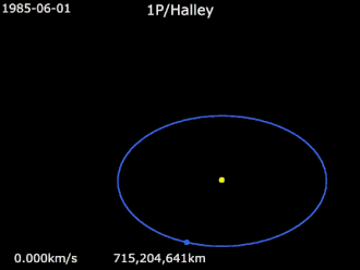 - ^ a b "Horizons Batch for 1P/Halley (90000030) on 2209-Feb-03 and 2209-Apr-10" (Perihelion occurs when rdot flips from negative to positive). JPL Horizons. Archived from the original on 30 June 2022. Retrieved 30 June 2022. (JPL#73 Soln.date: 2022-Jun-07)