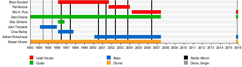 Eidolon was a Canadian power metal band formed in 1993 by brothers Shawn and Glen Drover (who both went on to become members of Megadeth).[1][2][3] The band was signed to Metal Blade Records, and released four records on that Label. Eidolon signed soon after to Escapi Records.[1] The band has released seven studio albums to date. In 2005, Eidolon announced the addition of new vocalist Nils K. Rue (Pagan's Mind).[4]