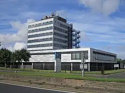 The council's main administrative offices are at the Municipal Building on Kingsway in Widnes, which had been completed in 1967 for Widnes Borough Council.[38] It also has offices at Rutland House in Runcorn town centre.[39]