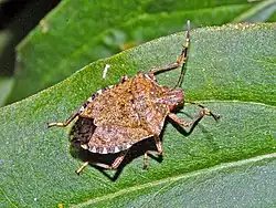 Halyomorpha is a genus of shield bugs in the subfamily Pentatominae and tribe Cappaeini, erected by G. Mayr.[2] This genus probably has an Asian centre of origin, but Halyomorpha halys, the brown marmorated stink bug, is an invasive species with a world-wide distribution.[3]