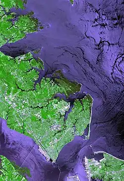 According to the United States Census Bureau, the city has a total area of 136 square miles (350 km2), of which 51 square miles (130 km2) is land and 85 square miles (220 km2) (62.3%) is water.[23]