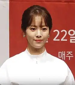In 2018, Han starred in the film Miss Baek, playing the titular protagonist; an ex-convict who is emotionally closed up due to the social stigma.[28] Han's performance in the film won her the Best Actress award at the prestigious Blue Dragon Film Awards and Baeksang Arts Awards as well as other major award ceremonies.[29][30] The same year, she returned to the small screen with romance fantasy drama Familiar Wife, taking on the role of an ordinary wife with anger management issues.[31]