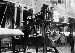 The Hanriot 1909 monoplane had an uncovered rectangular-section wire-braced wooden fuselage with deeply cambered parallel-chord wings. The main undercarriage consisted of a pair of skids which carried a pair of independently sprung wheels mounted on a steel cross tube, the skids being carried on two pairs of struts which converged inwards, the aft pair being continued above the fuselage to form an inverted V cabane to which the wing bracing and warping wires were attached. The front struts terminated at the engine bearers, which were midway between the upper and lower longerons. Tail surfaces consisted of a tailplane and elevator mounted on top of the fuselage and a fixed fin mounted under the fuselage with the attached rudder underneath the horizontal tail surfaces.[1] The aircraft was controlled with a pair of handwheels on either side of the cockpit operating wing warping and elevator, and foot-pedals operating the rudder.