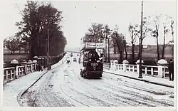 In 1901 the first electric trams began to run along the Uxbridge Road, causing the population of the village to expand faster than with the arrival of the trains half a century before. First however, the tram company had to strengthen Hanwell Bridge, as well as widen it on its north side. A balustrade, which survives to this day, lines each side. Another stipulation placed upon the company was that the standards to support the catenary also had to be able to double as street lampposts. The cars cost £1,000 each yet the ordinary fare from Shepherd's Bush to Uxbridge was only 8d.